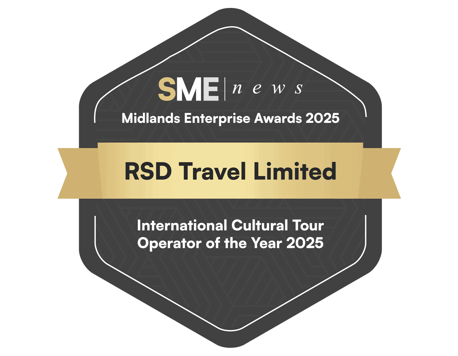 Opnieuw kan RSD Travel – onze Engelse partnermaatschappij – zich op de felbevochten Britse reismarkt verheugen op een bijzondere erkenning: RSD Travel werd onlangs onderscheiden met de Midlands Enterprise Award. En wel als “International Cultural Tour Operator of the Year 2025” – als “Internationale Studiereisorganisator van het Jaar 2025”.